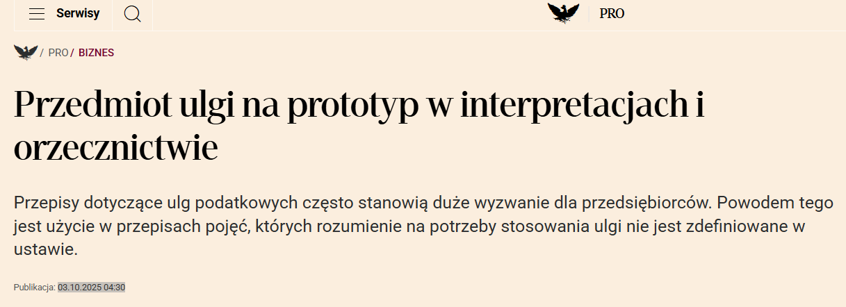 Przedmiot ulgi na prototyp w interpretacjach i orzecznictwie